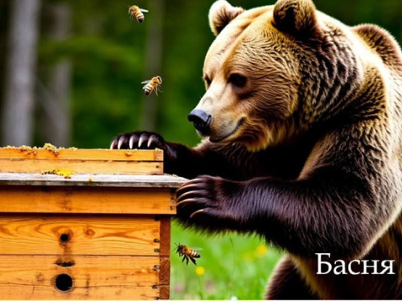 Так в улей ласково и запускает лапу,